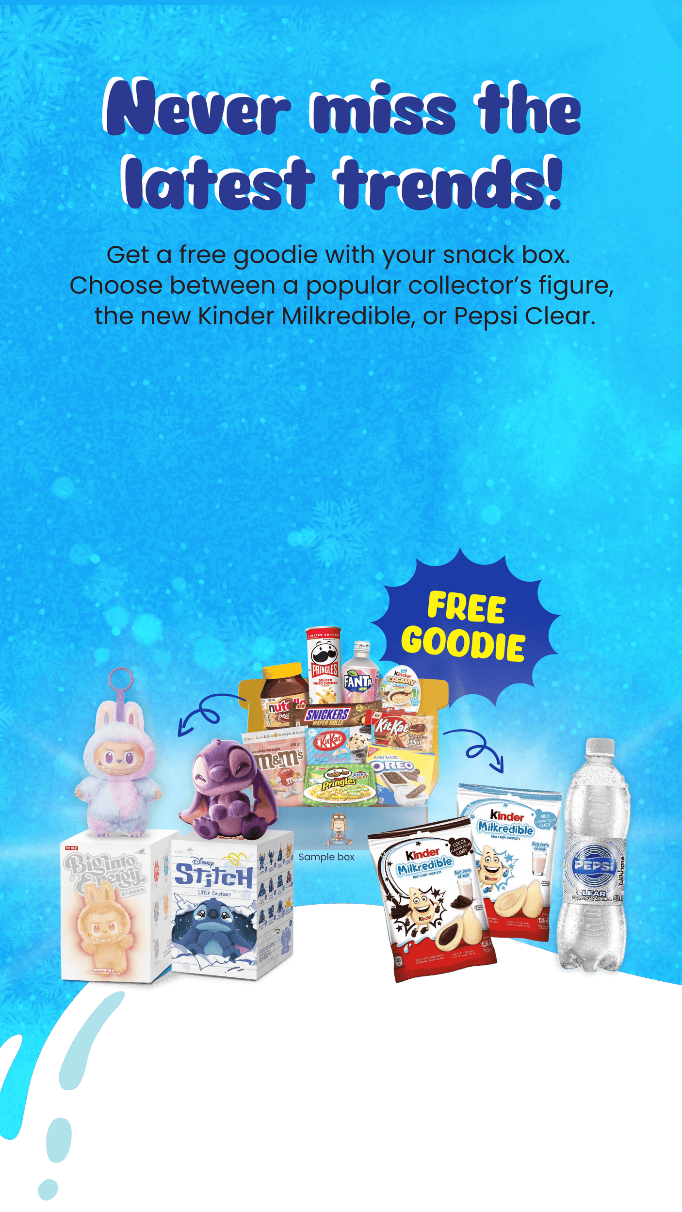 Λάβετε τις μηνιαίες λιχουδιές σνακ σας από όλο τον κόσμο. Κάθε μήνα νέα χώρα, νέα σνακ και νέα γευστική περιπέτεια αποκλειστικών προϊόντων που δεν μπορείτε εύκολα να βρείτε στο τοπικό σας κατάστημα.